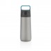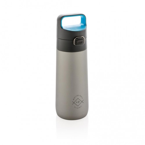 Герметична вакуумна пляшка для води з кришкою, що закривається на кнопку і зручною ручкою. Обсяг: 450 мл. Зареєстрований дізайн®.