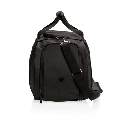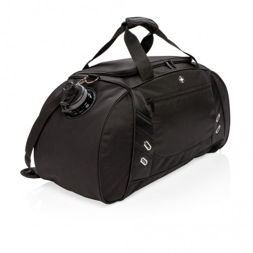Сумка Swiss Peak з надміцного поліестеру 600D і 1680D прекрасно підійде для походів в спортзал або далекої поїздки. Містке основне відділення закривається П-образною блискавкою, є спеціальне відділення для взуття з вентиляцією і бічна кишеня для пляшки. Універсальні зручні подвійні ручки і регульований ремінь через плече. Не містить PVC.